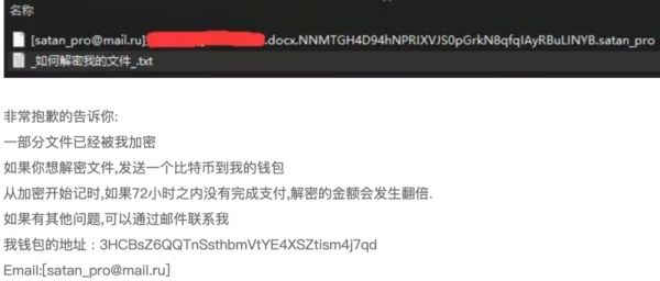 超市立即进行了报案,南通市公安局与市局网安等部门组成专案组进行侦查。通过数据勘验,专案组找到一份告知如何解密文件的全英文留言,要求受害人必须支付 1 比特币(时价约合人民币 47000 元)作为破解费用。
