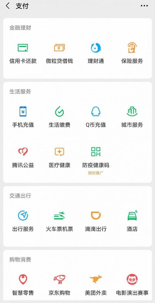 微信支付页面九宫格一直是用户最常使用服务入口之一,对于接入端口进行重新排列,也体现出金融板块对于腾讯重要性的提升。