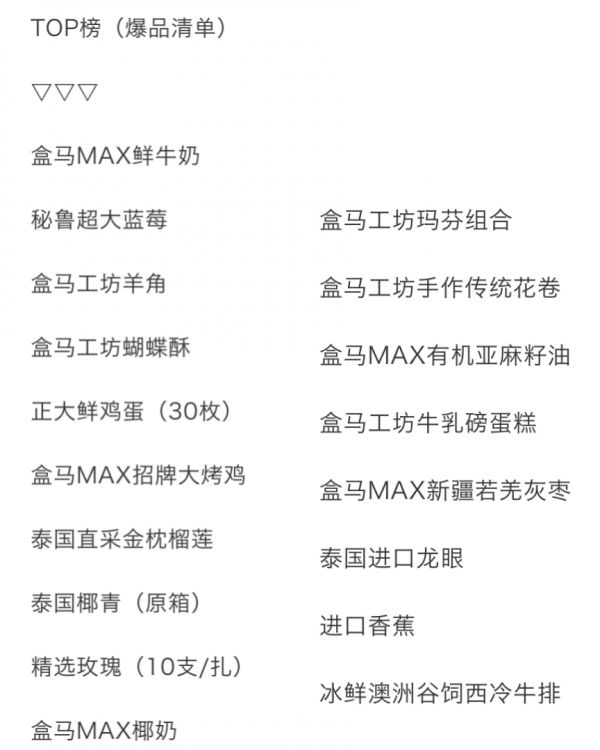 剩余的60%也基本是盒马自营商品,均为引流型的网红商品,如知名宠物食品品牌渴望、网红李子柒旗下的红油面皮、辣酱和螺蛳粉等产品。很明显,此类商品借助了部分天猫的供应链能力,这要归功于去年双方开始进行供应链的整合。