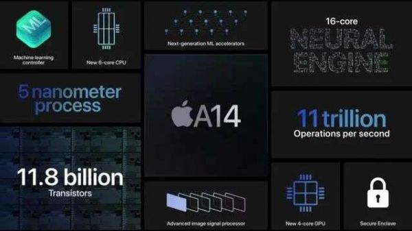 在发布会上提起A14芯片,苹果CEO库克难掩得意,称其为“史上最快的智能手机芯片”并“领先竞争对手几代”。