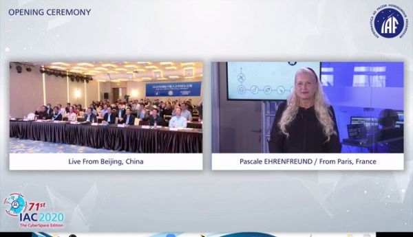 10月12日,北京时间20:00-24:00(巴黎时间14:00-18:00),2020年IAC举办了开幕式等活动。中国宇航学会与未来宇航研究院共同组织了2020年IAC中国分会场,组织中国航天人一起在线参会。中国运载火箭技术研究院院长、IAF中方副主席候选人王小军,中国宇航学会副理事长兼秘书长、IAF卫星商业应用委员会秘书长王一然,中国空间技术研究院科技委主任、IAF空间能源委员会副主席李明等在IAF任职的专家、本届IAC论文作者以及从事和关心国际学术交流活动的有关单位的领导和专家70余人到场参会。