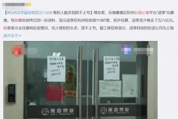 此前微博上,有视频显示杭州一长租公寓平台的物业大门紧锁。