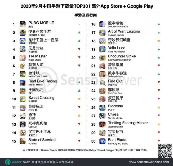 根据 Sensor Tower 数据,《是特工就上一百层》在今年9月的全球下载量将近810万次,下载量前三的市场为印度,俄罗斯和墨西哥。该游戏也在Sensor Tower发布的9月「中国手游出海下载量榜单」位列第三。