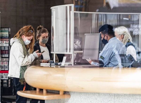 柏林,两名女子在德国历史博物馆接待处办理入馆参观手续。图源:新华社