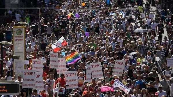 8月大量民众聚集柏林街头,抗议为遏制疫情而实施的限制措施。图源:法新社