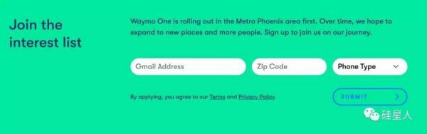 目前,Waymo One 打车服务还只对早期乘客开放,感兴趣的用户可以在 Waymo 官网留下联系信息加入等待列表,在接到 Waymo 的通知后,才能正常使用 App 打车。