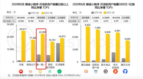看一看+是今年小程序月活用户增量最快的前 5 名之一