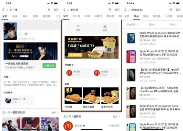 现在,你从微信的搜索一栏输入任何关键词,从朋友圈的标签点入,只要这个关键词、这个标签,有小程序,有公众号、有视频号,你总能找到与它相关的一切:资讯、视频号以及交易。而这些,是其他短视频平台商业能力无法比拟的。