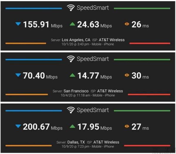 当然,大家都知道,很多时候“宣称速率”都无法与用户的真实体验划等号。那么Sub-6GHz和毫米波分别能够提供的真实5G网络带宽是多少呢?得益于同时支持两种网络的美版iPhone 12系列机型,有网友已经帮我们找到了这个问题的答案。