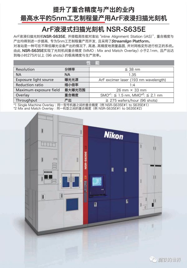 现在,Nikon在光刻机市场的日子不好过,为了表白技术含金量,甚至将ArF液浸式光刻机描述成可用于5nm量产工艺制程的机器(见下图)。