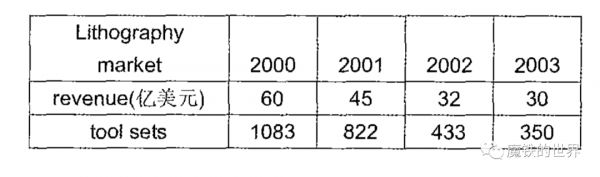 此外,随着日本DRAM产业衰落并逐渐团灭,又加剧了光刻设备市场容量的进一步缩水,光刻机厂家吃饭越发不易。在2000年到2003年4年间,全球光刻机的销量从1083台萎缩到350台,销售额从60亿美元腰斩为30亿美元。