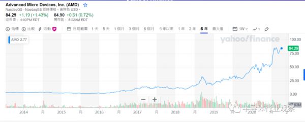 在半导体界,AMD可以说是“翻身农奴把歌唱”的典型代表之一。2015年,AMD每只股价一度保持在2.6美元左右,而如今它已是你隔壁84.29美元高攀不起的“大哥哥”了。经历了资不抵债、亏损多年的低谷,AMD正在半导体CPU和GPU领域以老二的身份顽强的奋斗着。