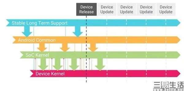 在Android 11后,谷歌想要升级内核版本,以便让相应设备获得更安全以及更高的性能,就可以直接向具体的设备推送GKI,而不再需要上游元器件厂商以及设备制造商的配合。