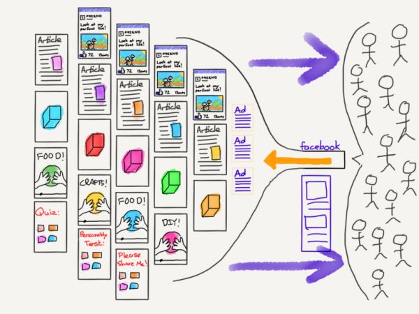 比方说,假设一家发行商委托创作了有关香蕉的内容。创作这个内容需要花钱,花了钱的发行商当然渴望收回成本。发行商本来可以对内容付费,但是收费的话发行商就得卖内容,可卖东西这件事情又难又贵,会增加投资回收的门槛。所以大多数发行商的做法都是将香蕉内容跟广告捆绑起来免费提供,然后努力提高内容的访问量。比方说,发行商可能会努力确保香蕉内容在Google“香蕉”搜索结果的排名很高,或者让读者可以轻松地在社交网络上共享这个关于香蕉的内容。这两种策略都有免费的好处,何乐而不为呢?而且,如果内容需要进一步推广的话,在Google和Facebook上投放广告既便宜又容易评价效果,使得有可能实现投资的正回报,至少在广告支出上可以。