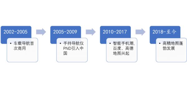 中国有电子地图来导航的这20年间,共经历了四个发展阶段,由于自动驾驶需求的兴起,高精地图自2018年开始蓬勃发展。