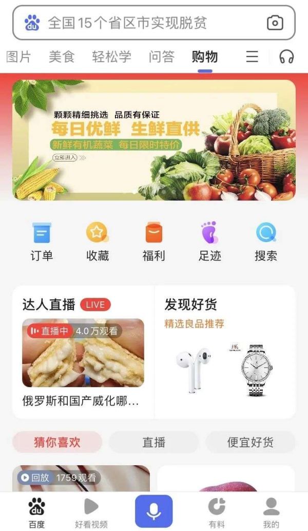 今年6月,百度APP上线“618”频道,正式加入电商购物节大战。百度618频道的商品大多来自京东,但也有部分来自“度小店”。