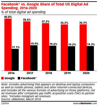 Google的目的正是要巩固其在美国线上营销市场的垄断地位。市场研究机构eMarketer的数据,2016年Google在美国的线上营销市场份额一度超过40%,但随后几年不断下滑,今年预计跌至36.3%。