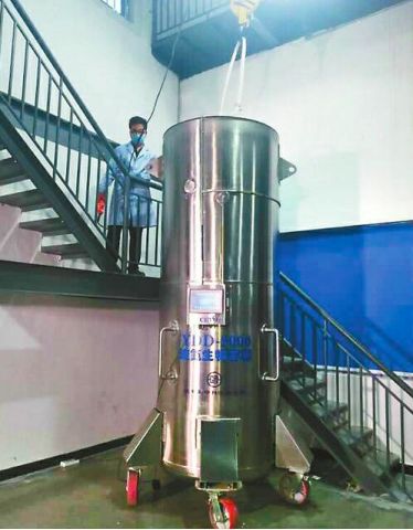 灌流最终完成,已是近6小时之后。接着,展文莲的身体被转移到大尺寸程序降温床上,据说这是世界上唯一一台可以连续将整个人体从常温降到-190℃左右的自动控制设备。它使用液氮蒸气进行快速降温,整套流程下来,耗时55小时。5月10日,展文莲的身体被放入3米多高的液氮生物容器保存,至今已有3年。