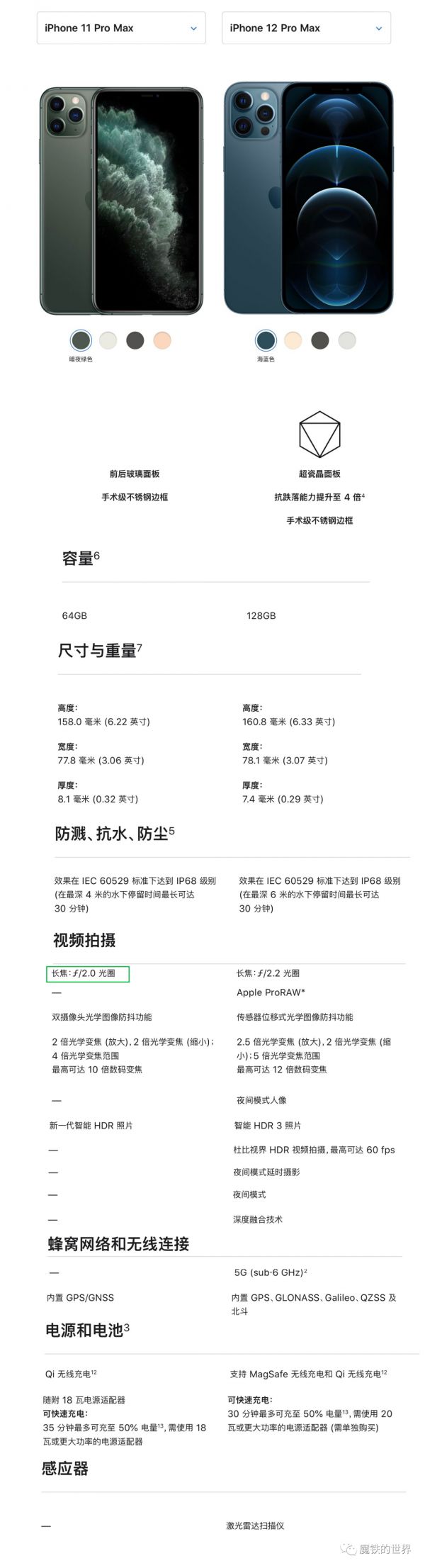 这其中,比较重要的升级是面板玻璃、长焦摄像头传感器防抖、支持杜比视界视频拍摄、搭载激光雷达传感器,其它都是细微改进。具体见下图: