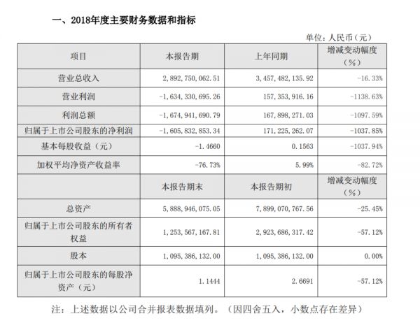 2018年,达华智能出现上市以来首次亏损:公司2018年度实现营业总收入28.93亿元,同比下降16.33%;净利润为亏损16.06亿元,上年同期净利润为1.71亿元。
