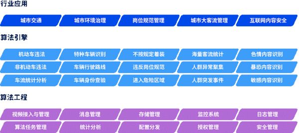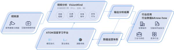 基于自身在AI与视频分析技术方面的优势,提出城市“五大空间”智慧化管理理论,并针对“五大空间”研发出智慧交通、城市治理、客流管理、岗位管理、互联网内容安全“五线产品”,基于“视频异常分析”和视频分析之上的大数据平台,通过海量数据发现并管理异常,从而赋能到具有行业Know-How的完整运营体系中,完成数据到价值的过程,帮助了管理者们及时发现、高效管理。