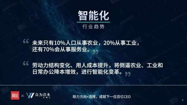人口向第三产业的迁徙势必会倒逼三大产业降本增效,原本一些重复性的工种终将被更高效率、更准确的智能化系统和设备所替代,这是当下智能化技术诞生和能够运用的前提。