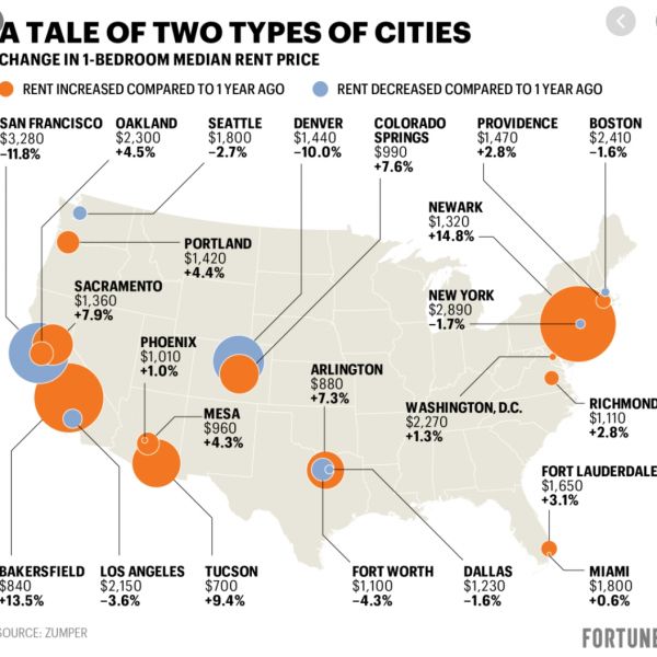 2020 年不同城市的租金变化,可以看到越来越多的人选择离开旧金山这样的大城市,前往美国的其他地方。