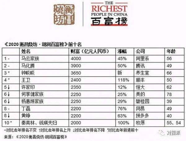 2020胡润百富榜:马云捐1000亿仍是首富 农夫山泉钟睒睒第三