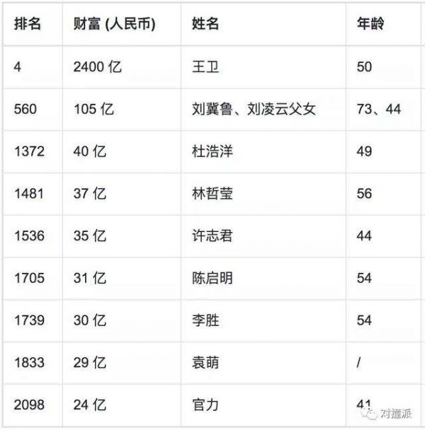 顺丰王卫的个人财富在过去一年也实现了翻倍,直接成为第4名,财富规模2400亿。