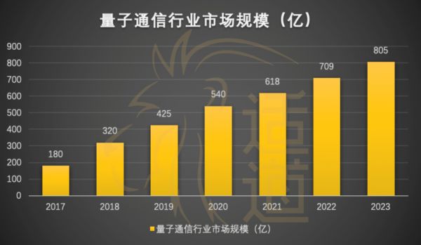 根据前瞻产业研究院发布的数据显示,2017年我国量子通信行业市场规模达到180亿元,并预测2023年,我国量子通信行业市场规模将达到805亿元。