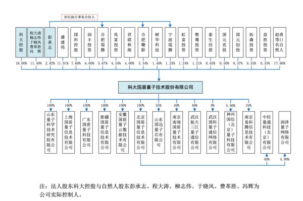 根据股权结构,IPO之前,科大控股占股份18%,国科控股占股7.6%,创始人彭承志占股2.82%,值得关注的是,潘建伟教授也是公司创始人之一,在公司2009年刚成立的时候出资了330万元,同时还是公司实际控制人之一暨董事长彭承志、董事暨总裁赵勇的博士研究生导师,与公司常务副总裁陈庆系本科同学。