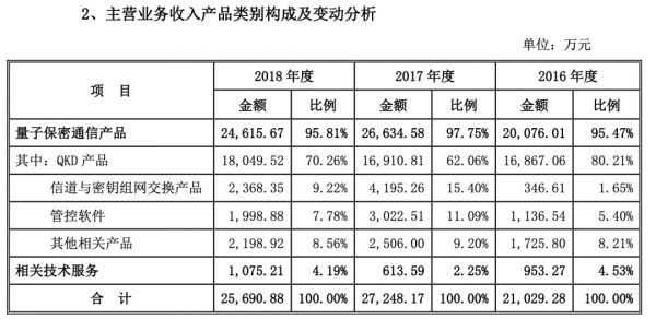 根据国盾电子招股书,公司经营发展主要依托于国家和地方政府推进的众多量子保密通信网络建设项目,主要产品为量子保密通信网络核心设备,包括QKD 设备、信道与密钥组网交换设备,报告期内的设备销售收入总额占营业收入总额的比例为 75.74%。