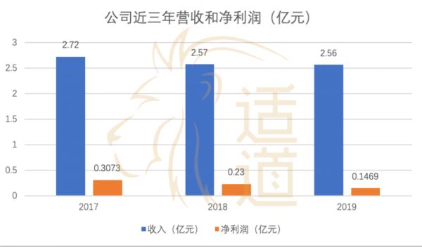 但是2017年-2019年内,公司主营业务收入分别为2.72亿元、2.57亿元、2.56亿元,收入略有下滑,扣除非经常性损益后归属于母公司所有者的净利润分别为3073.40万元、2300.23万元和1469.32万元,净利润也在下滑。