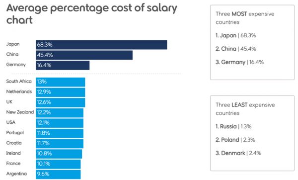部分国家平均丧葬费用占个人年薪比例 | 图片来自:sunlife.co.uk