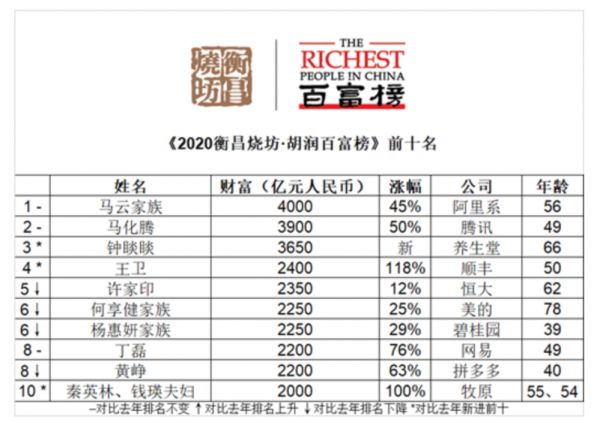 @TechWeb【2020胡润百富榜:马云蝉联首富,马化腾财富增长最多】 10月20日消息,胡润研究院今日发布《2020胡润百富榜》,上榜企业家财富计算的截止日期为2020年8月28日。