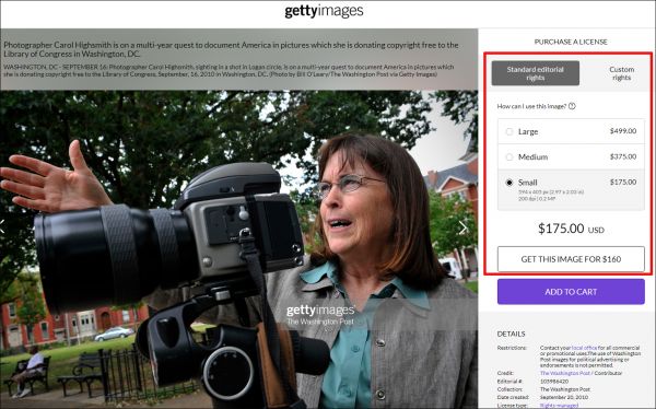 他人拍摄的海史密斯照片标价为175美元至499美元不等Getty Images网站截图