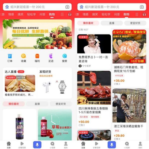 这样一来,百度通过搜索引擎在电商方面的转化效果便十分有限,依赖搜索引擎推行度小店等电商业务也不会取得重大突破。也许是为了避免这样的局面出现,百度将购物频道的重心放在了零食、水果、土特产等快销品上。快销品的单价低、且刚需性强,潜在复购率高,是试错率相对较低的产品品类,即便失败了也不足为惜。
