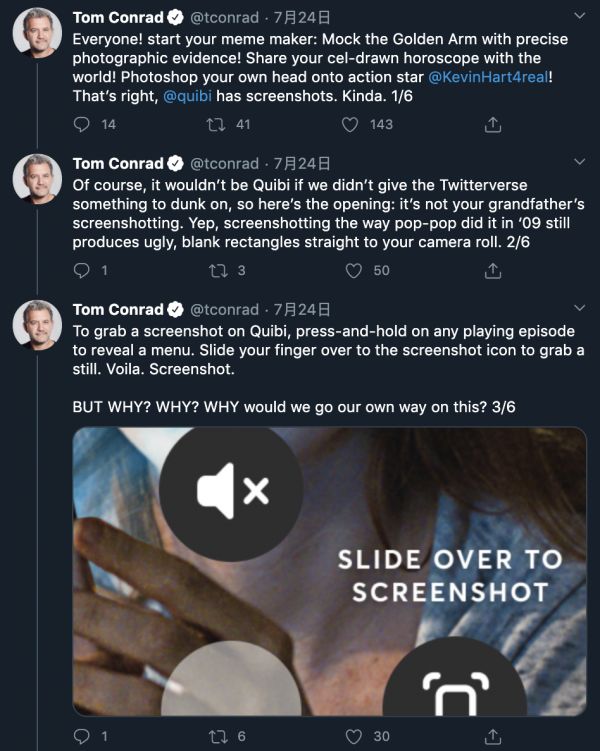 Quibi首席产品官在个人Twitter宣布截图功能上线