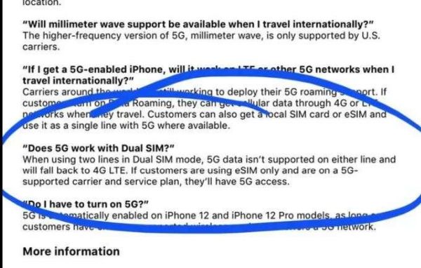 根据外媒曝出的一份文件表明,美版的iPhone 12系列在插入两张手机卡时,iPhone 12系列是无法开启并使用5G网络的,只有在单卡的情况下才能正常使用5G网络。对此,有外媒从美国第一大运营商Verizon拿到的PPT中再次确认了这点。幻灯片还特别指出,eSIM客户必须拿掉实体SIM卡后才能让iPhone 12系列启用5G网络功能,虽然说后续会通过OTA的方式解决这一问题,但还是比较麻烦。比较庆幸的是,国行版的iPhone 12系列并不会出现这类问题。