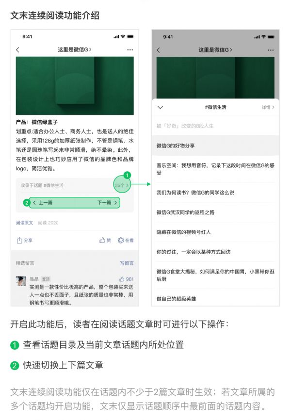 微信公众号这次的「文末连续阅读」功能,就是一个很好的例子。