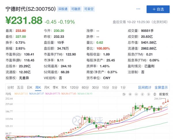 目前宁德时代的股价从过去看是最高点,或许从未来看现在正是低点。