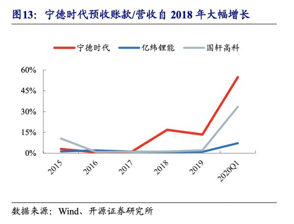 报告显示2015-2019 年,宁德时代营收和净利润 CAGR 分别为 51.68%、37.41%,保持高速增长。