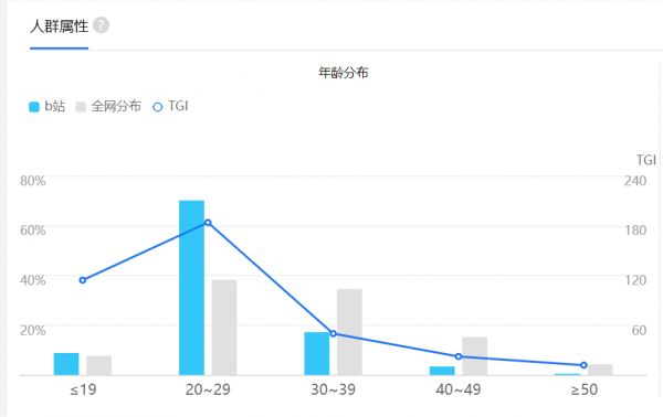 而关于B站的用户画像,虽然目前没有十分权威数据,但就百度指数的人群画像显示,网站上常搜索B站的用户年龄主要集中在20~29岁;同时B站CEO陈睿在二季度财报电话会上也明确表示,B站的新增用户和以前差别不大,为20岁左右的年轻人。