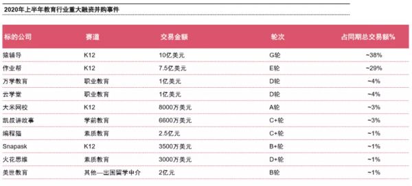 市场的表现也确实如此,在今年9月21日,有媒体爆出猿辅导完成了DST Global领投的G2轮10亿美元融资,而这距离其在今年9月份获得腾讯投资领投的12亿美元G1轮融资还不到两个月。k12赛道上另一巨头作业帮也动作频频,在今年中旬宣布完成方源资本领头的7.5亿美元E轮融资后,如今被传出正在进行新一轮融资规模达7-8亿美元的消息。
