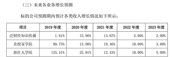 在回复函中,全通教育预计,巴九灵2019年的营业收入和净利润增长率分别达到51.95%和22.22%,2020年这两个数字分别达到21.5%和23.74%。