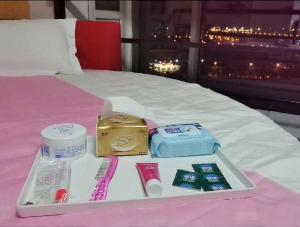 你与「玲儿」幽会的场所,大概率是这样——类似普通的宾馆场景,入口处摆放着拖鞋,桌上或床上摆有抽纸、湿巾、润滑液、饮料、零食和避孕套。「玲儿」是用户从一众娃娃中指定的,通常坐在床头或床尾。注重氛围的成人体验馆店方,会在墙上装饰风格暧昧的照片或壁画。