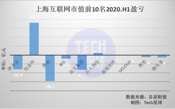 从图中可以看到,上海上市前10大科技互联网企业中,盈利的仅有陆金所、巨人网络和前程无忧 3 家。