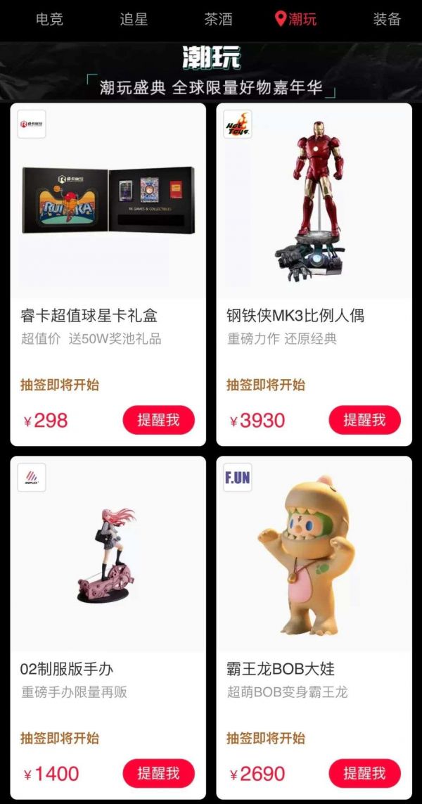 在今年的双11期间,通过HeyDrop你还能抢到很多意料之外的东西,覆盖高溢价茶酒收藏珍品、明星亲签礼盒、限量电竞显卡以及独家首发模玩、机车等。据天猫小黑盒团队透露,围绕电竞、潮玩、机车、茶饮、明星等几大赛道将推出百大稀缺尖货抽签玩法,丰富的商品库让每个人都有机会参与到刷“新”游戏。