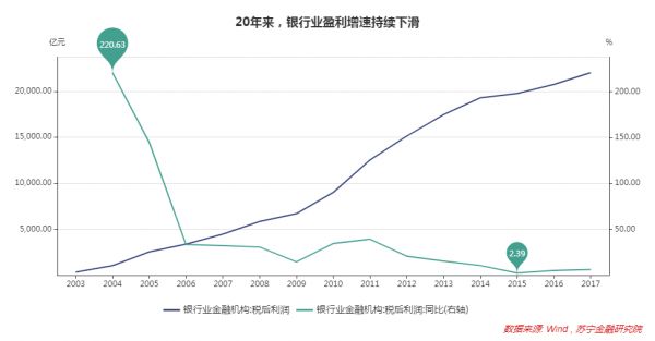 2006年之前,银行业批量股改上市,业绩增长非常亮眼,2004年曾录得220%的增速,之后回归常态,但仍处于30%以上的高位。2012年之后,中国GDP增速下台阶,银行业遭遇对公贷款萎缩、不良率攀升双重打击,盈利增速持续下滑,逐步滑落至个位数。股票估值是企业未来现金流的折现,银行利润增速持续下滑,估值水平也随之跌入底部,再也没能爬起来。