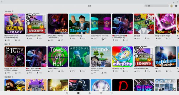 Roblox的游戏选择页面